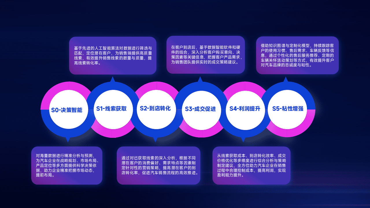 通过拓宽潜在客户来源、、优化线索分配并提高到店转化率,,以增强销售效率。。。同时,,,利用线索数据不断优化分析模型,,,有效提升转化率,,,扩大营销影响力。。。